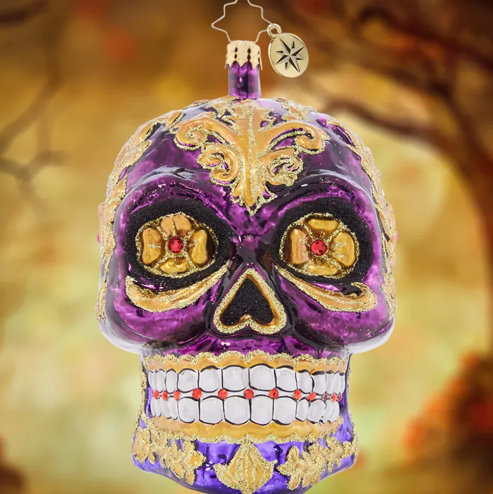 Looking Fancy As Ever With Glowing Golden Eyes And Stunning Glittered Swirls, This Calavera Ornament Is A Frightfully Festive Piece To Feature On Your Tree.