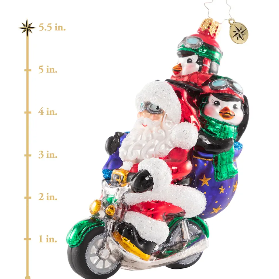 Cheerful Chopper Comrades, Born To Be Wild! Santa Is Looking Slick On His Shiny New Motorcycle–Even His Penguin Friends Are Eager To Join This Biker Gang! 1020805, Christopher Radko