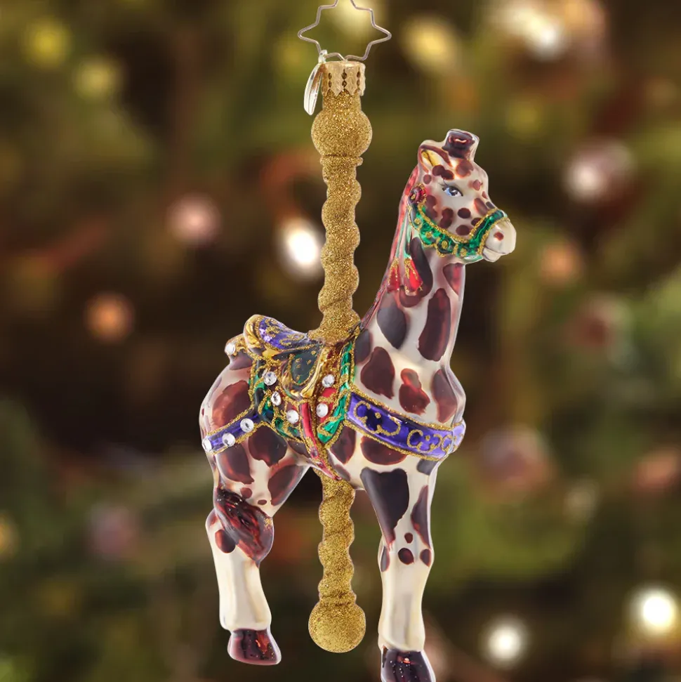 How’s The Weather Up There? This Gloriously Gilded Giraffe Stands Tall And Proud, The Standout Star Of The Carousel Ride.