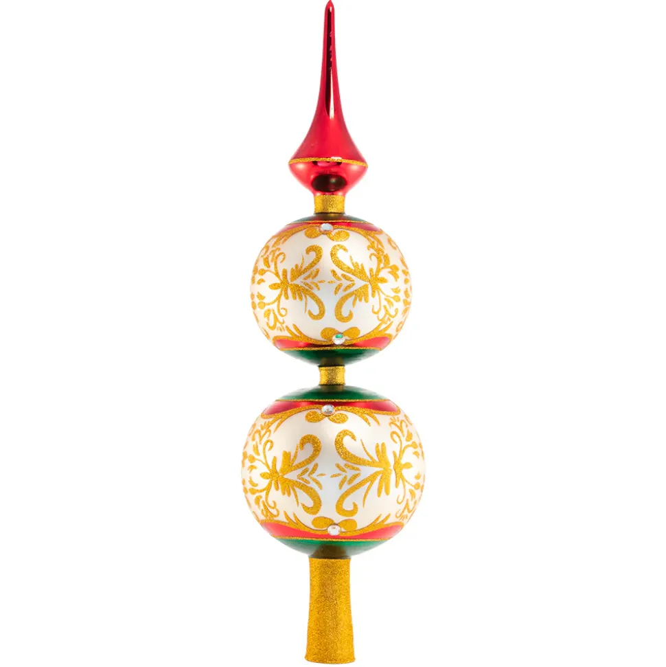Luxury Abounds Finial, Add A Touch Of Glam To Your Tree With This Super Luxe Tree Topper. Artfully Crafted In Tones Of Glittering Gold, Ruby Red And Emerald Green This Finial Is Truly Tops! 1020867, Christopher Radko