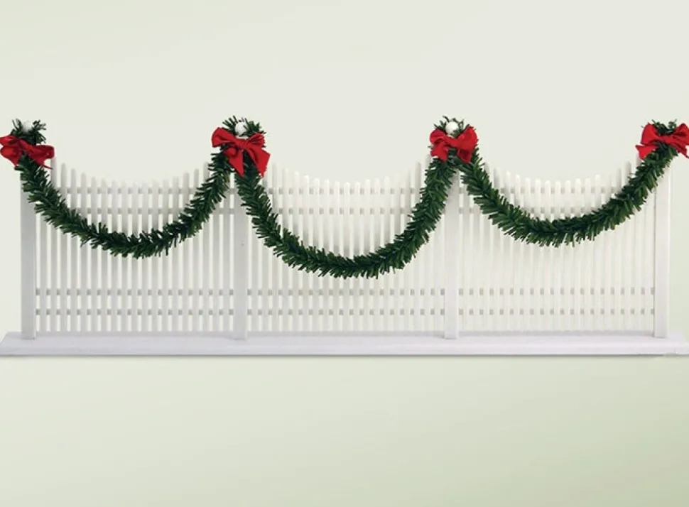 Decorated Picket Fence, This White Picket Fence Is Traditionally Decorated With Holiday Greens And Red Ribbons.