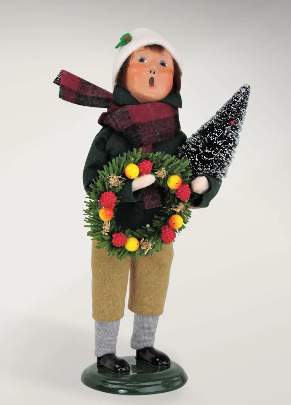 Evergreen Boy, The Evergreen Boy Is A New Addition To The Byers Choice Christmas Market Collection For 2016. Joyce Has Designed This Collection After Visiting The Wonderful Outdoor Christmas Markets That Are Held In All Of The Major Cities Throughout Europe. Part Of The Christmas Market Collection