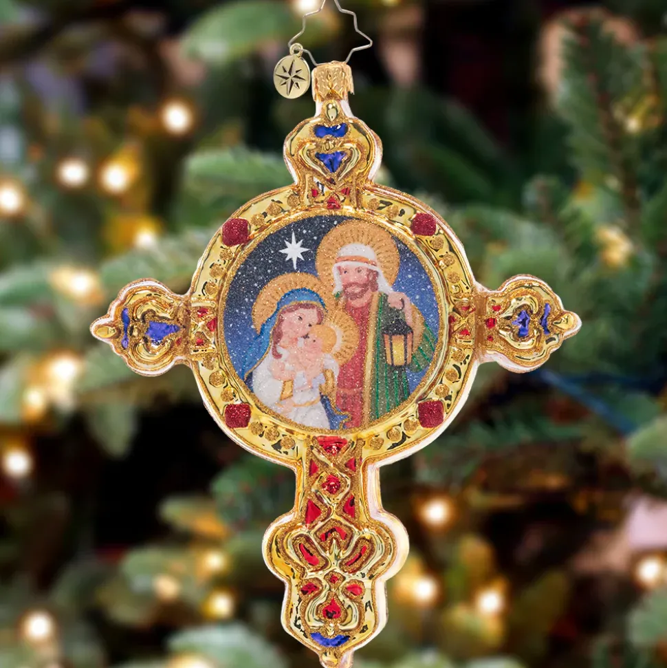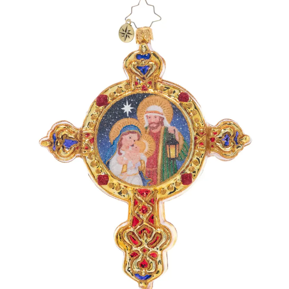 This Gleaming Golden Cross Features The Beautiful Scene Of Baby Jesus, Mary, And Joseph – A Piece That Celebrates The Beauty Of Christmas.