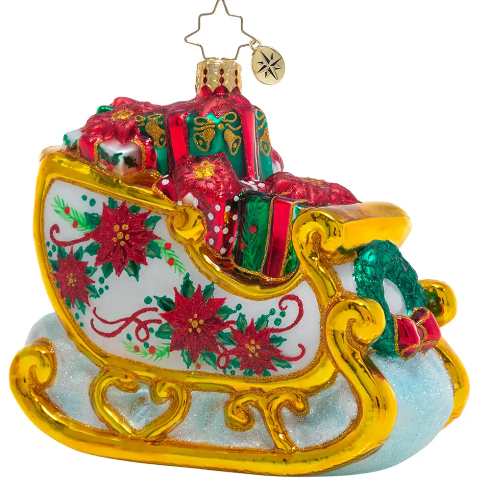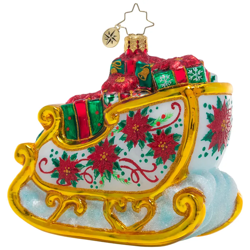 Winter Floral Sleigh, The Elves Have Been Hard At Work Giving Santa’s Sleigh An Extra-Festive Touch This Year. Painted With Classic Christmas Poinsettia Blooms And Shiny Gold Trim, They’Ve Made Sure He’Ll Be Riding In Style On Christmas Eve! 1021025, Radko