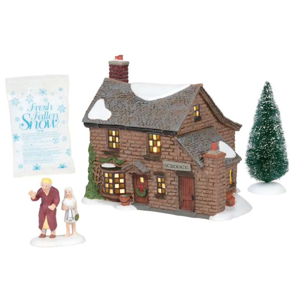 Dv, Scrooge’s Boyhood Home, First In A Grouping Of 3, Scrooge Meets The Ghost Of Christmas Past, Making Several Stops Including One The Home Where Scrooge Grew Up. Set Of 4 Includes: “Scrooge With The First Spirit” Accessory, Sisal Tree, And Bag Of Snow. 6005415, A Christmas Carol, Dickens Village Set/4