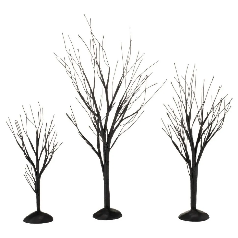 Black Bare Branch Trees, St/3,Use Department 56 Cross Product Accessories To Enhance Your Halloween Or Fall Village Display. Black Bare Branch Trees, Set Of 3. 9.75″, 7.75″, 5.75″ 4033851, Halloween Village