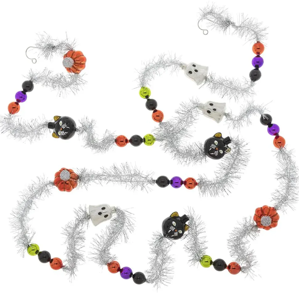 Glass Pumpkins, Ghosts, Black Cats And Miniature Baubles In Classic Halloween Colors Add Spooky Flair To This Decorative Tinsel Garland.