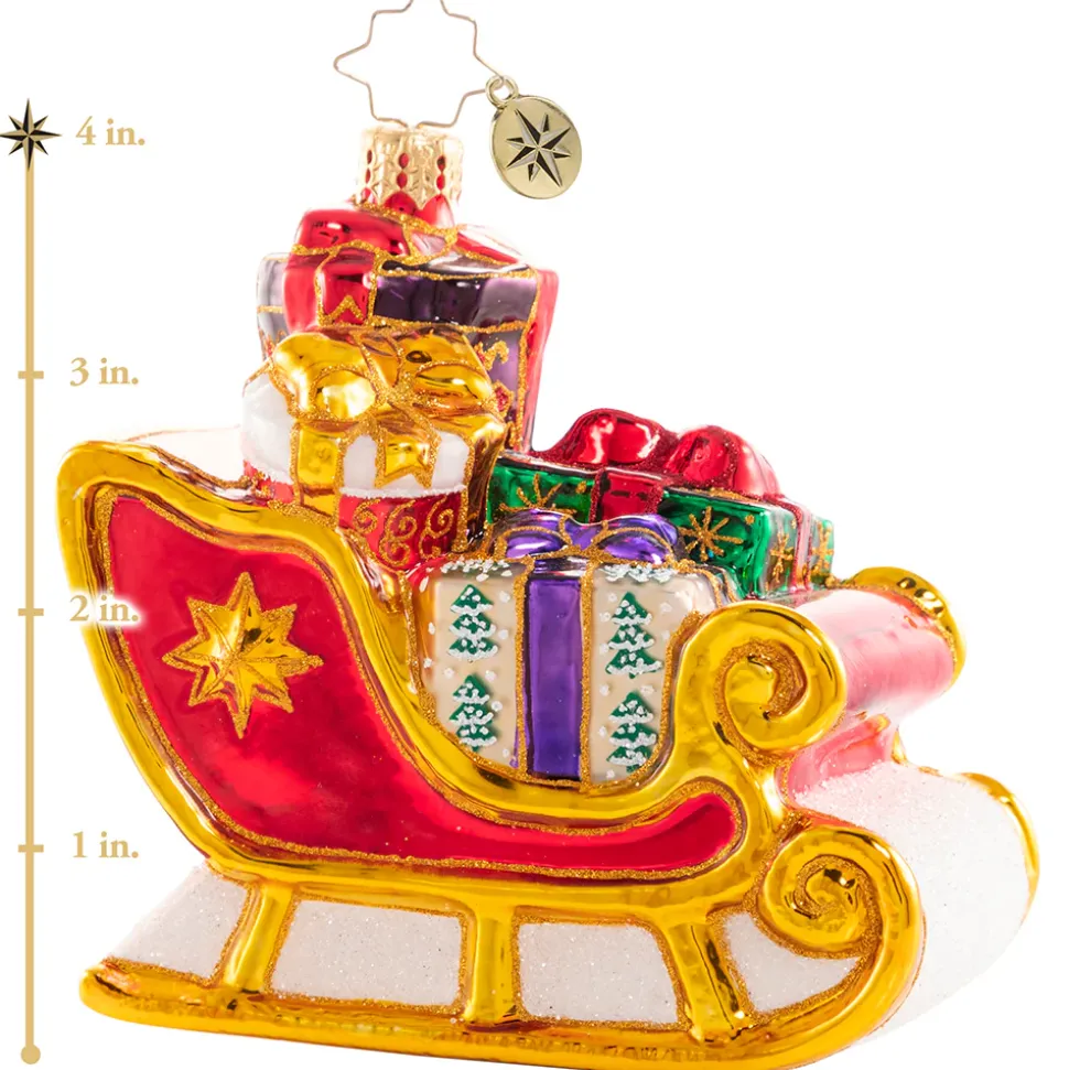 Glorious & Gilded Sleigh, Time For A Sleigh Ride! Gleaming In Red And Gold, This Spiffy Sleigh Seems To Glow As The Elves Load It Up For Christmas Deliveries. 1020737, Christopher Radko