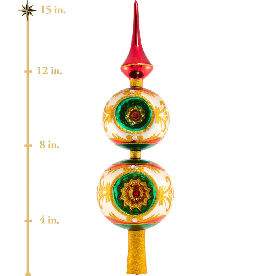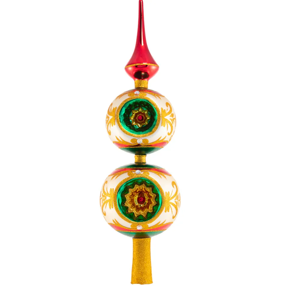 Luxury Abounds Finial, Add A Touch Of Glam To Your Tree With This Super Luxe Tree Topper. Artfully Crafted In Tones Of Glittering Gold, Ruby Red And Emerald Green This Finial Is Truly Tops! 1020867, Christopher Radko
