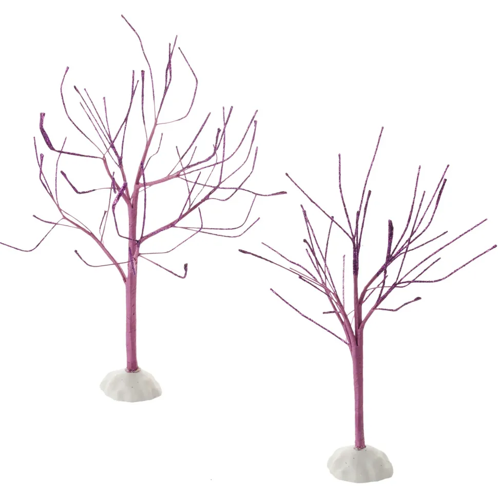 Halloween Village Purple Sparkle Bb Tree, St/2 Tree, Purple Is The New Creepy Color To Add To Your Village Display. This Set Of 2 Wired Trees Will Sparkle And Are Completely Bendable. Retired