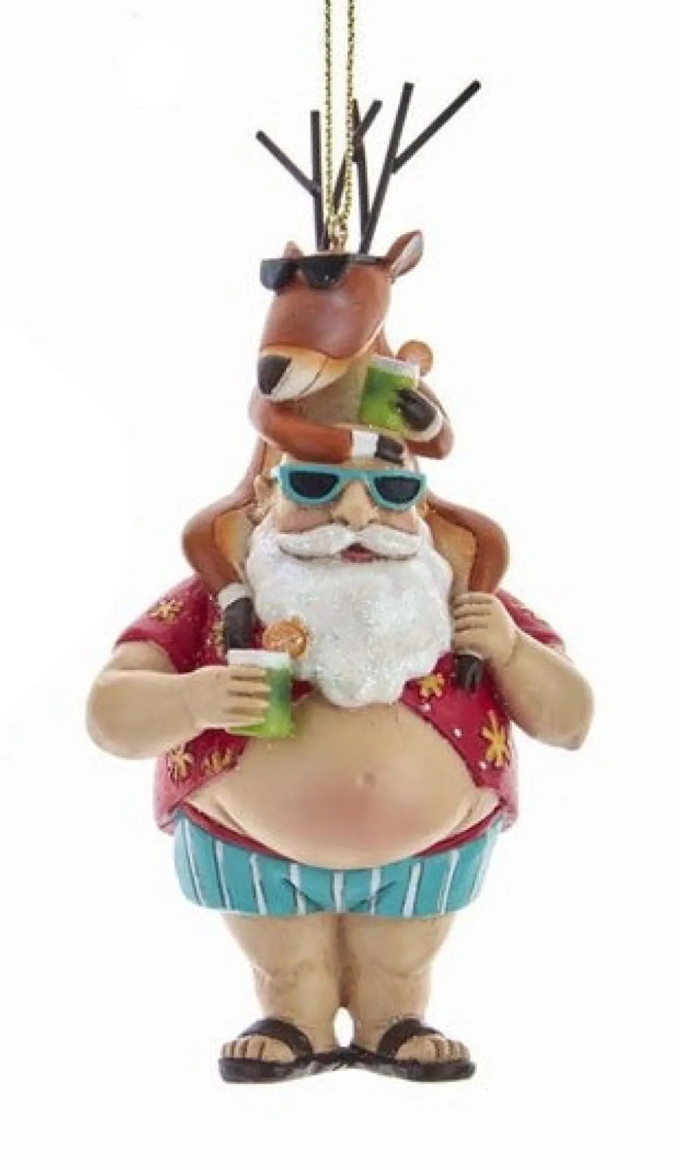Chubby Santa With Surfboard/Reindeer Ornament, Choose Your Favorite Santa With Surfboard Or Santa With Reindeer Or Both E0491, Kurt Adler