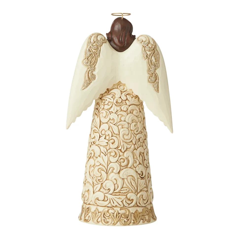 Jim Shore, Holiday Lustre Nativity Angel, Holding A Cross In Her Hands, This Majestic Jim Shore Angel Calls Upon Grace And Faith With Powerful Reverence. With The Hallowed Nativity Scene Upon Her Gown, She’Ll Bring The Humbling Message Of Christmas To Your Home On Golden Wings. 6006612, Heartwood Creek