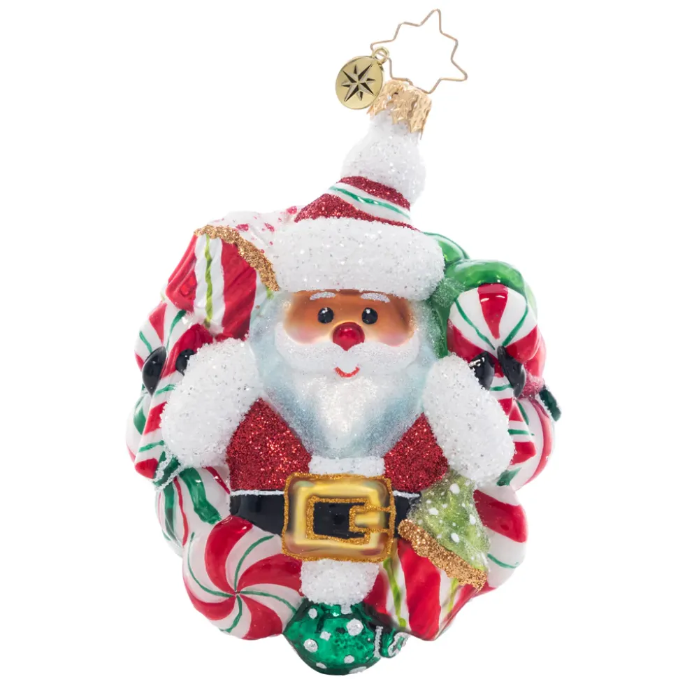 This Darling Santa Is Surrounded By A Wreath Of Delicious Peppermints. Decorate Your Tree With This Candy-Coated Red And Green Treat!